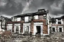 By the late 1930s, shikumen buildings were already on their way out, overtaken by newer styles of lilong residences, and large apartment buildings. Commercial property development in Shanghai virtually ceased during the Second World War and the Chinese Civil War that followed it. After the end of the war 1949, shikumen construction ceased completely, replaced with planned construction of residential buildings on collectivist principles.[9] In the early 1950s, it was calculated that there were more than 9000 shikumen buildings, comprising 65% of residential housing stock by area in Shanghai.[10] While constructions of new residential buildings decreased this percentage over time, most shikumen neighbourhoods remained unchanged in their crowded state until economic reforms in the 1980s and 90s began the wave of demolition and reconstruction which, by the early 21st century, has left only a few shikumen developments intact. In Xuhui District alone, it has been calculated that shikumen residences had decreased from 2.68 million square metres in 1949, to 0.25 million square metres by the late 1990s.[11] The forced demolition of crowded and stable shikumen communities gave rise to controversies, such as a 2005 incident where a developer resorted to arson to persuade residents to leave, resulting in the death of two elderly residents.[12][13]