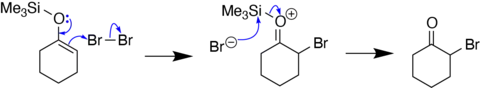 Halogenation of silyl enol ethers gives haloketones.[19][20]