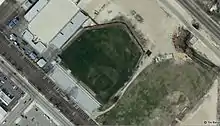 As a football stadium, the field ran southeast to northwest, with one large concrete grandstand, along the southwest sideline, which was the third base line for baseball. The catcher and batter faced due north (towards second base), and the field was lit for night games.