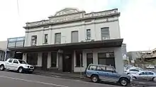An austere, two storey, rendered brick building in a classical idiom, Smithfield Chambers stands prominently on a sloping site to the northeast side of upper Mary Street, Gympie. Stables and a row of earth closets stand to the rear of the property.[1]