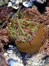 The snakelocks anemone (Anemonia viridis) is a sea anemone found in the eastern Atlantic Ocean and the Mediterranean Sea. The latter population is however sometimes considered a separate species, the Mediterranean snakelocks anemone (Anemonia sulcata).[2]