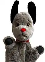 Sooty is a British children's television media franchise created by Harry Corbett in the late 1950s, which incorporates primarily television and stage shows. The franchise was born in the wake of the success of his fictional glove puppet character introduced to television in 1955, with the franchises focused around the adventures of the character – a mute yellow bear with black ears and nose, who is kind-hearted but also cheeky, performs magic tricks and practical jokes, and infamously squirts his handler and other people with his iconic water pistol, including on other television programmes he guest stars on. The franchise itself also includes several other puppet characters who were created for television, some of whom became the backbone to performances, and features additional elements including an animated series, two spin-off series for the direct-to-video market, and a selection of toy merchandising.