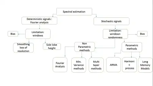 In a single dimensional case, a signal is characterized by an amplitude and a time scale. The basic concepts involved in spectral estimation include autocorrelation, multi-D Fourier transform, mean square error and entropy.[2] When it comes to multidimensional signals, there are two main approaches: use a bank of filters or estimate the parameters of the random process in order to estimate the power spectrum.