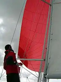 A spinnaker pole is a spar used in sailboats (both dinghys and yachts) to help support and control a variety of headsails, particularly the spinnaker. However, it is also used with other sails, such as genoas and jibs, when sailing downwind with no spinnaker hoisted. (Since the load on a spinnaker pole is very light on this point of sailing, sometimes a special light spinnaker pole called a whisker pole is used in these circumstances.)
