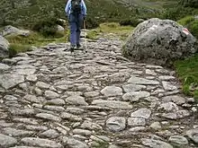 Since the opening of the San Bernardino road tunnel in 1967, the pass has lost its former importance; it is not kept open in winter. Thanks to its lack of importance it is now a quiet pass where essential portions of the historical roads have survived allowing a good historical review for hikers on the Via Spluga.[2]