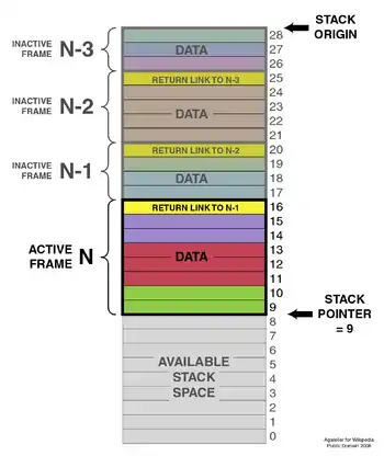 In most modern computer systems, each thread has a reserved region of memory referred to as its stack. When a function executes, it may add some of its local state data to the top of the stack; when the function exits it is responsible for removing that data from the stack. At a minimum, a thread's stack is used to store the location of a return address provided by the caller in order to allow return statements to return to the correct location. The stack is often used to store variables of fixed length local to the currently active functions. Programmers may further choose to explicitly use the stack to store local data of variable length. If a region of memory lies on the thread's stack, that memory is said to have been allocated on the stack, i.e. stack-based memory allocation.