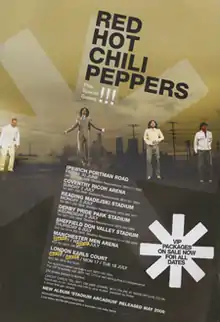 The Stadium Arcadium World Tour (also known as The Intergalactic Tour)[1] was a 2006–2007 concert tour by the band Red Hot Chili Peppers in support of their ninth studio album, Stadium Arcadium. The band started out with a pre-tour promotional leg of dates around the world while the world tour was composed of six legs, three in Europe, one in Australia, New Zealand and Asia, and the other two in the US and Canada.