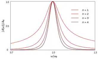 The bandwidth is thus reduced by a factor of . In terms of the number of stages .[3] Thus, the four stage synchronously tuned amplifier will have a bandwidth of only 19% of a single stage. Even in a two-stage amplifier the bandwidth is reduced to 41% of the original. Staggered tuning allows the bandwidth to be widened at the expense of overall gain. The overall gain is reduced because when any one stage is at resonance (and thus maximum gain) the others are not, unlike synchronous tuning where all stages are at maximum gain at the same frequency. A two-stage stagger-tuned amplifier will have a gain 3 dB less than a synchronously tuned amplifier.[4]