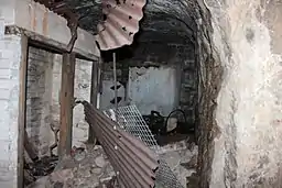 During World War II the tunnels were still being used and brick buildings were constructed within the cave and galleries.[2] A sign on the wall of the cave records that in 1941 this cave was the King's Regiment Battalion Headquarters.