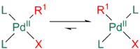 Finally, an extra ligand can associate to the palladium to form an 18-electron trigonal bipyramidal structure, with R1 and R2 cis to each other in equatorial positions. The geometry of this intermediate makes it similar to the Y-shaped above.[11][29][30]