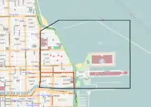 Streeterville is a neighborhood in the Near North Side community area of Chicago, Illinois, United States, north of the Chicago River. It is bounded by the river on the south, the Magnificent Mile portion of Michigan Avenue on the west, and Lake Michigan on the north and east, according to most sources, although the City of Chicago only recognizes a small portion of this region as Streeterville. Thus, it can be described as the Magnificent Mile plus all land east of it. The tourist attraction of Navy Pier extends out into the lake from southern Streeterville.[1][2] The majority of the land in this neighborhood is reclaimed sandbar.[3]