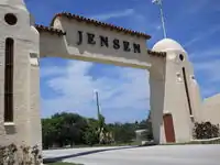 The Stuart Welcome Arch (also known as the 1926 Welcome Arch or Rio-Jensen Beach Arch) is an historic arch-shaped structure which straddles County Road 707 between 2369 and 2390 Northeast Dixie Highway in Jensen Beach, Florida. It was built in 1926 to mark what was then the town line between the town of Jensen to the north and the town of Stuart to the south. During the Great Depression, the town of Jensen went bankrupt and was dissolved, while the town (now City) of Stuart was forced to relinquish much of its territory north of the St. Lucie River. Today it is located entirely within the unincorporated area of Martin County. It has been restored several times over the years. On September 15, 2004, it was added to the U.S. National Register of Historic Places.