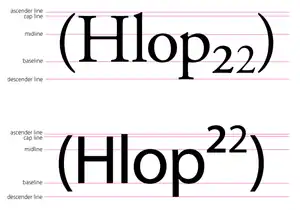 | Look up subscript or superscript in Wiktionary, the free dictionary. |