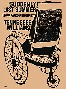 Suddenly Last Summer is a one-act play by Tennessee Williams, written in New York in 1957.[1] It opened off Broadway on  January 7, 1958, as part of a double bill with another of Williams' one-acts, Something Unspoken (written in London in 1951).[2](p 52) The presentation of the two plays was given the overall title Garden District, but Suddenly Last Summer is now more often performed alone.[3] Williams said he thought the play "perhaps the most poetic" he had written,[2](p 86) and Harold Bloom ranks it among the best examples of the playwright's lyricism.[4]