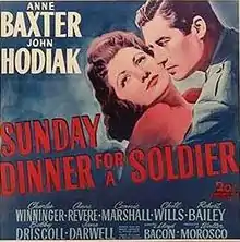 Sunday Dinner for a Soldier is a 1944 film directed by Lloyd Bacon and starring Anne Baxter and John Hodiak. It is based on a novelette by Martha Cheavens.