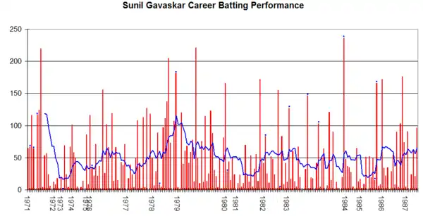 - Test Batting and Fielding in Each Season by Sunny Gavaskar, CricketArchive. Retrieved 5 September 2008.