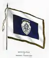 An early example of the flag, printed in a book on Samuel Chapin's genealogy; note the lack of gold shading on the banner and statue, wider white field and golden fringe.