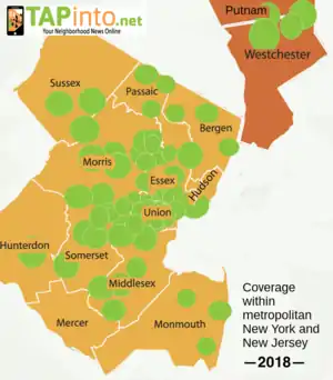 TAPinto is a network of more than 80 independently owned and operated local news websites in New Jersey, New York, and Florida.[1][2][3][4] Based in New Providence, New Jersey,[1][2] TAPinto.net is one of the largest online local news gathering operations in New Jersey. It was founded by New Providence residents Michael and Lauryn Shapiro in October 2008 to provide independent local news.[3] In the past two decades there has been a seismic decline in local journalism, with many publications going bankrupt; in the coverage vacuum, hyperlocal online media such as TAPinto are often the only local news coverage that many communities get.[5][6]