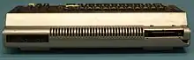 The TRS-80 does not use the S-100 bus like other early 8080 and Z80-based computers.[9] A proprietary Expansion Interface (E/I) box, which fits under the video monitor and served as its base, was offered instead. Standard features of the E/I are a floppy disk controller, Centronics parallel port for a printer, and additional cassette connector. Optionally, an extra 16 or 32 kB of RAM can be installed and a daughterboard with an RS-232 port.[44] The 40-conductor expansion connector passes through to a card edge connector, which permits the addition of external peripherals such as an outboard hard disk drive, a voice synthesizer, or a VOXBOX voice recognition unit.[45][46]