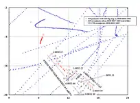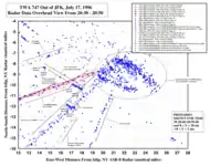 Radar data showing vehicle and/or object tracks within 10 nautical miles (19 km; 12 mi) of TWA flight 800 just before the accident.[1](fig. 25, p. 90)