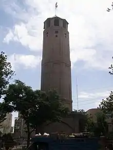 The Tabriz Firefighting Tower (also Yanghyn Tower; Azerbaijani Turkic: يانغين کولهسی, Persian: برج آتشنشانی) is a historical tower located in Tabriz, Iran. The tower, standing at 23 meters high, was built in 1917. It was used to investigate fire related incidents inside the city. The city was constantly observed from this tower for any signs of smoke and fire. Following any visual evidence, the firemen were informed and sent to the fire incident location.