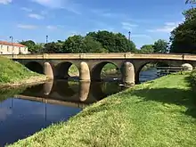 Tadcaster Bridge or Wharfe Bridge spans the River Wharfe in Tadcaster, North Yorkshire, England. The road bridge is believed to date from around 1700.[1] It is the main route connecting the two sides of the town and one of two road crossings in the town, the other being the bridge for the A64 bypass. Tadcaster Bridge partially collapsed on 29 December 2015 after flooding that followed Storm Eva, and reopened on 3 February 2017.[2][3][4]