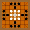 Breakthru was developed in the 1960s as part of the 3M bookshelf game series. It features tafl-like symmetry,[41] but with twelve defenders plus one "flagship" (cf. king) pitted against twenty attackers upon a tiered board, so that the objective of the defenders is to escort the flagship from the centre to the outer zone of the board.[42] Apart from the distinction of the inner zone and outer zone, there are no distinctive spaces on the Breakthru board. Breakthru also features a distinctive double move, whereas no evidence points to such a move in any of the historical games.