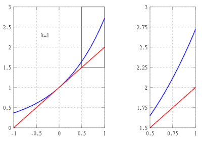 where ξ is some number between 0 and x. Since ex is increasing by (*), we can simply use ex ≤ 1 for x ∈ [−1, 0] to estimate the remainder on the subinterval [−1, 0]. To obtain an upper bound for the remainder on [0,1], we use the property eξ<ex for 0<ξ<x to estimate