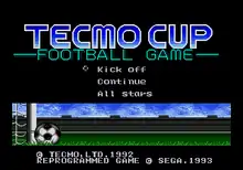 Tecmo Cup Football Game is a cancelled 1993 video game. While the game was about to be published by Sega with license from Tecmo for the Mega Drive/Genesis, it was cancelled due to the release department of Sega Europe's policy regarding third party games (along with many other games, most of them that already had a Japanese release, like Splatterhouse 3 or Golden Axe III).[1] The game would have enjoyed a Europe-exclusive release because the game was heavily promoted on many magazines and promo videos at the time. 'SuperJuegos' magazine from Spain even had a VHS promotion video including footage of the game and promoting its further release. There is a ROM of this game available on the Internet despite not having been released in cartridge form.