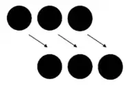 In 1926 and then again in 1938, the Gestalt psychologist Joseph Ternus observed and defined the “problem of phenomenal identity”.[1] Ternus’ research was based around earlier undertakings in the domain by Pikler in 1917.[2] This problem of phenomenal identity that Ternus had discovered occurs due to the human visual system's natural ability to establish and then preserve the entities of objects even when the defining attributes of those objects have undergone drastic changes and no longer resemble what they once did.[3] The effect that Ternus had observed was in fact a bistable percept or perception of apparent motion which he found using a display consisting of three frames presented sequentially.[4]
