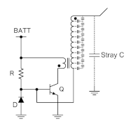 - The Tesla coil (L1, L2), an air-core double-tuned resonant transformer, which generates the high output voltage.