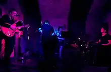 Guests and collaborators are varied in musical styles and backgrounds. in 2018, a theatre-cabaret event with an important improvisational ingredient played in all the main centres in New Zealand with a flexible lineup. Key members were Stuart Porter (saxophone, improvisation guide), William Henry Meung (synthesiser), Alex Wolken (piano), Brendan Ryniker (drums, South Island), Steve Cournane (drums, Auckland), Susan Ellis (trumpet-cello, South Island), Pania Simmonds (bass, Dunedin), Greig Bainbridge (electric bass), with guests appearing "à l'improviste" in many centres.[10] Latest co-musicians for a short tour of the state of Tennessee with an appearance at Cropped Out Festival in Kentucky[11] were Nashville residents Matthew Swanson (bass) and Chris Davis (percussion).[12] Other US collaborators have been members of Simon Joyner's Ghosts including Joyner himself, with Dave Nance and Chris Deden. Steve Cournane (percussion and drums) and Greig Bainbridge (bass), working with Stuart Porter of Primitive Art Group (saxophone) were among musicians essential to a Builders tour of New Zealand in 2016.[13] After a ten-year break from the band, pianist Andrew McCully rejoined Builders in Auckland in 2019 to revive Songs for Michael Joseph Savage. In Wellington (NZ) Direen, guitarist/curator/founder of Marineville Mark Williams and poet/composer/percussionist Jo Contag formed a splinter group combining spoken word/poetry by Bill Direen, guitar loops/enrichment and drum patterns, known as Ferocious. Stuart Page (1983–85, 2010–present) can also be found in NZ lineups. Steve Cournane and Greig Bainbridge play regularly in NZ, expanding the repertoire to include rarer material.