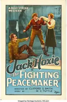 The Fighting Peacemaker is a 1926 American silent western film directed by Clifford Smith and starring Jack Hoxie, Lola Todd and Ted Oliver.[1]