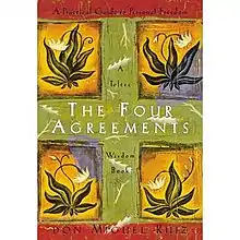 The book takes inspiration from a set of spiritual beliefs held by the ancient Toltec people to help readers transform their lives into a new experience of freedom, true happiness, and love.[4] According to the author, everything a person does is based on agreements they have made with themselves, with others, with God, and with life itself.[1] In these agreements, people may tell themselves who they are, how to behave, what is possible, and what is impossible.[1] Some agreements that individuals create may not cause issues, but there are certain agreements that come from a place of fear and have the power to deplete one's emotional energy as well as diminish the self-worth of a person.[1] The book states that these self-limiting agreements are what creates needless suffering.[1] Ruiz also believes that to find personal joy, one must get rid of society-imposed and fear-based agreements that may subconsciously influence the behavior and mindset of the individual.[5] Another basic premise of the book suggests that much of suffering is self-created and that most of the time, individuals have the ability to transform themselves and the negative thoughts they may have about situations occurring within their life.[6] The author identifies sources of unhappiness in life and proposes four beneficial agreements that one can make with oneself to improve ones overall state of well-being. By making a pact with these four key agreements, an individual is able to dramatically impact the amount of happiness they feel in their lives, regardless of external circumstances.[6]