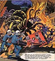 The Giant Spider Invasion is a 1975 science fiction horror film directed by Bill Rebane. The film is about giant spiders that terrorize the town of Merrill, Wisconsin and the surrounding area. The Giant Spider Invasion was given a U.S. release in theaters in 1975, and was distributed by Group 1 Films. The film received a considerable theatrical run and became one of the 50 top-grossing films of that year. After a three-time ABC television network run, the movie achieved additional exposure many years later, when it was featured in a 1997 episode of Mystery Science Theater 3000. It is now regarded as a cult classic in the B movie realm.[4]