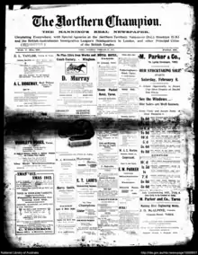 - The Northern Champion. 1 (1): 1. 2 February 1912 http://nla.gov.au/nla.news-page11722129. Retrieved 26 June 2013. Missing or empty