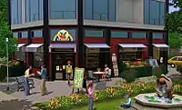 The Sims 3: Town Life Stuff (TLS) is the fourth stuff pack for The Sims 3. It was announced on June 16, 2011 and was released on July 26, 2011.[5] TLS includes new venues and community lots such as playgrounds, libraries, and laundromats. The pack also includes an assortment of new items and clothing. There are 25 new clothing items in total with 12 items for female adults (5 tops, 2 hair styles and 5 outfits), 6 items for male adults (a pair of pants, a hair style and 4 tops), 4 items for female children (top, hairstyle, pair of pants and an outfit) and 3 items for male children (a top, a hair style and a pair of pants). It also comes with redesigned rabbit holes, such as Scrumptious Nibbles Cafe and Fresh and Frozen Express Grocer. It also allows sims to enroll their children in prep school and has new objects for community lots. Some of the new items include jungle gyms, slides, and sandboxes for children. There are pre-made community lots as well, which are Mr. Crunches Fitness Gym, Sudsy Time Laundromat, Ray of Sunshine Park, and Noble Tome Library. There are a large number of items for upgrading libraries and parks. Unlike other stuff packs, Town Life Stuff includes new objects that were originally from expansion packs. The jungle gym and sandbox were originally from Generations, while the washer, dryer, and hamper were originally from Ambitions.