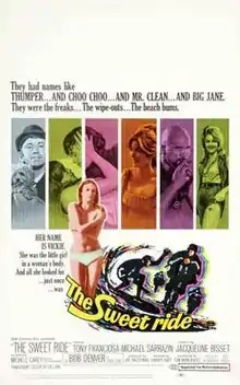The Sweet Ride is a 1968 American drama film with a few surfer/biker exploitation film elements. It stars Tony Franciosa, Michael Sarrazin and Jacqueline Bisset in an early starring role. The film also features Bob Denver in the role of Choo-Choo, a Beatnik piano-playing draft dodger. Sarrazin and Bisset were nominated for the Golden Globe Award for Most Promising Newcomer, Male and Female respectively.