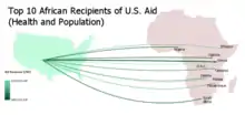 Flow maps are maps that use line symbols to portray movement or relationship between two or more places, such as air travel, monetary aid, or economic trade. The lines may be schematic straight lines or curves, or may represent the actual travel route. Some flow maps simply show the presence of connections, while others use visual variables such as size (width) or color to represent the properties of each connection.