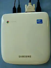 Examples of web thin clients include Chromebooks and Chromeboxes (which run Chrome OS) and phones running Firefox OS. Chromebooks and Chromeboxes also have the capability of remote desktop using the free Chrome Remote Desktop browser extension, which means, other than being a web thin client, they can also be used as an ultra-thin client (see above) to access PC or Mac applications that do not run on the Chromebook directly. Indeed, they can be used as a web thin client and an ultra-thin-client simultaneously, with the user switching between web browser and PC or Mac application windows with a click.