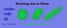 A fluid mechanism that contributes to the formation of thin layers is the straining of fluid by the sheared velocity profile which causes the fluid to tilt and disperse horizontally. If a patch of plankton is located at the fluid being sheared, a thin layer could be formed by the straining of the patch by velocity shear. The four phases of plankton distributions caused by straining are: 1) tilting, 2) shear-thinning, 3) decay, and 4) shear-dispersion (dissipation).[12]