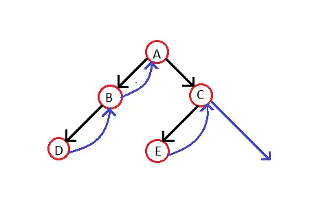 4'B' has a left child, but its already in the list of visited nodes. So, visit 'B'. Now check if it has a right child. It does not. So, make its threaded node (i.e. 'A') the current node.B DD B