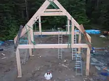 Traditional timber framing is the method of creating framed structures of heavy timber jointed together with various joints, commonly and originally with lap jointing, and then later pegged mortise and tenon joints. Diagonal bracing is used to prevent "racking", or movement of structural vertical beams or posts.[11]