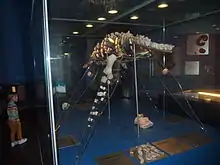 This timeline of plesiosaur research is a chronologically ordered list of important fossil discoveries, controversies of interpretation, taxonomic revisions, and cultural portrayals of plesiosaurs, an order of marine reptiles that flourished during the Mesozoic Era. The first scientifically documented plesiosaur fossils were discovered during the early 19th century by Mary Anning.[1] Plesiosaurs were actually discovered and described before dinosaurs.[2] They were also among the first animals to be featured in artistic reconstructions of the ancient world, and therefore among the earliest prehistoric creatures to attract the attention of the lay public.[3] Plesiosaurs were originally thought to be a kind of primitive transitional form between marine life and terrestrial reptiles. However, now plesiosaurs are recognized as highly derived marine reptiles descended from terrestrial ancestors.[4]