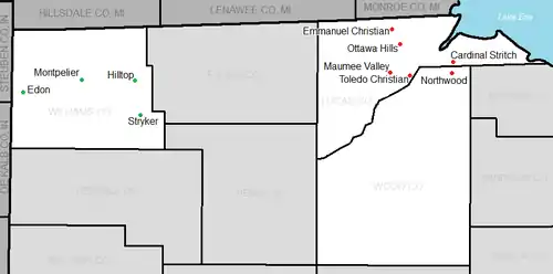 Edon, Hilltop, and Montpelier are primarily members of the Buckeye Border Conference for all sports, except for football, which is the only sport that they compete in the TAAC for.