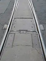 Structural design of trams can minimize the risks to tram drivers, tram passengers, pedestrians, and passengers in other vehicles in various kinds of tram-to-tram, tram-to-vehicle, and tram-to-pedestrian collisions.[19] A European standard is being prepared for crashworthiness for railway vehicle bodies.[20] The trams may contain emergency brakes. In Toronto the CLRV streetcars have a skirt added to the front of the car covering the coupler. It was added to prevent passengers from being dragged under the car's wheels. Trams should be designed to have impact absorbing materials in front and side constructions. Lifting points can be marked for fire brigades to help rescuers to find safe and strong enough parts of the tram when e.g. lifting a tram to rescue a patient underneath it. Inside the tram the structures should also contain impact absorbing materials and round shapes instead of sharp edges. Automatic door controlling sensors decrease the possibility of entrapment injuries. Common safety features onboard tram often include driver's vigilance control systems and programmable logic speed controllers.[21]
