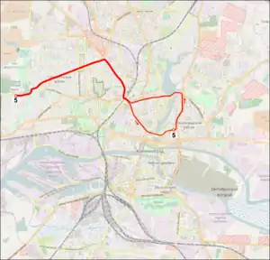 Königsberg's tram network reached its greatest extent in 1937, at which time it was organised into 15 routes with a total length of 102 km (63 mi).[1] During many decades of Kaliningrad's history as a German and then a Russian city, the trams have been an important element in the city's overall public transport provision, although in recent years the trams have lost out to the powerfully promoted share taxi businesses in the city: on some routes trams have been replaced by trolley buses.