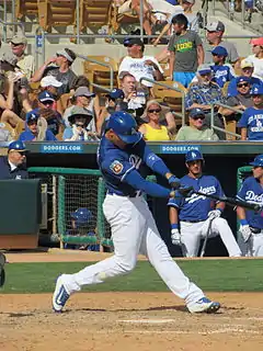 ![]() Thompson batting for the Los Angeles Dodgers during spring training in 2016 | |||