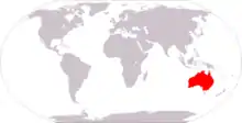 Triops australiensis has a wide distribution across Australia, excluding the northernmost parts of Western Australia, and Queensland.[3] It is also absent from Tasmania in the south, where it is replaced by Lepidurus apus.[1] The two species can be distinguished by the presence of a supra-anal plate between the caudal rami at the end of the abdomen in L. apus, which is lacking in T. australiensis.[4]