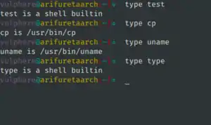 In Unix and Unix-like operating systems, type is a command that describes how its arguments would be interpreted if used as command names.